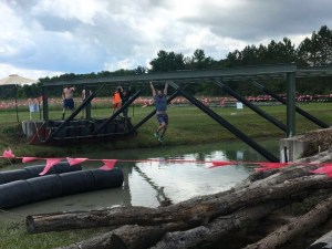 It was hard! The first mile was mostly without obstacles. Okay, with obstacles but they were large tree trunks to go over. I felt tired early. The sun and humidity in the 11:40 am heat didn’t help. The first big obstacle was a set of monkey bars and I AM SO PROUD that I made it across. It helped hearing encouragement from the volunteers. And I could feel how easy it would be to just let go because it was difficult.