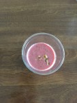 Next was Raspberry-Almond from the RW Cookbook (or as they titled it, Immune-Boosting, Raspberry-Almond Smoothie). This one contained raspberries, kefir, almond butter, honey, and ginger. The probiotic bacteria in kefir, zinc in wheat germ, and vitamin E in almonds are the immune-boosting parts of it. I always recommend taking zinc when you feel a cold coming on; I wish I remember what my organic chemistry professor told us on how it’s magic worked but that was one of my takeaways from the course. The smoothie wasn’t bad. My critics suggested taking the ginger out and adding something to make it sweet. It was also a little too thin for my liking.
