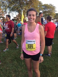 Today was a hot one! This year was the 10th annual Brooksie Way Half Marathon. At start time the temperature was nearly 70 degrees! Last year, it was in the 50s- the perfect running temperature. For some reason I thought the race started at 8:30, not at 8 am, but thanks to my NEED to be there real early, it wasn’t a problem… I also did not pick up my shirt or bib on Friday or Saturday but when I got there, there was no line so I didn’t stress.