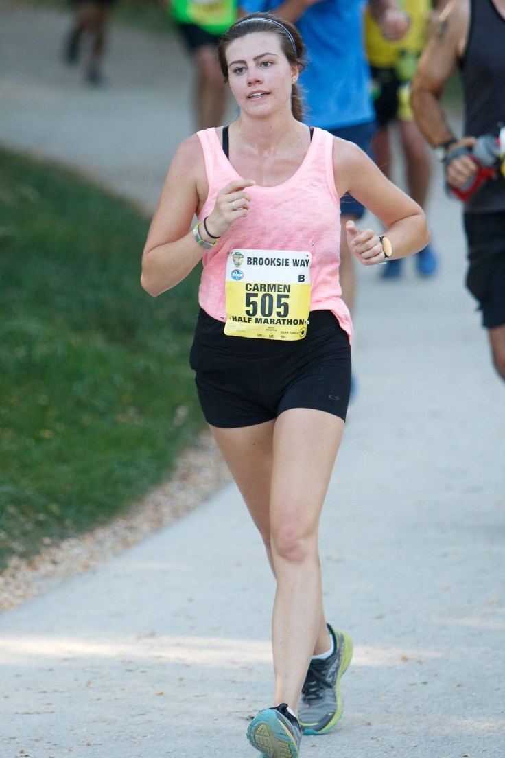 The Brooksie Way takes off from the grounds of my alma mater, Oakland University. I’ve participated in this race a few times now (previously 2013, 2014, and 2016). I knew it to be a challenging course and yet it holds my PR (2014, 1:50:11- looking back I have no idea HOW- I was living off of dorm food and from May to September I had only ran half the distance I did this summer). At least my runs then were usually hilly the month before the race since the campus and neighborhoods we would run around for Running Club were. It was good to be back. Before the race I saw two of my friends I’ve met because of Running Club! Sarah and Olivia. I wish I got a picture with them!