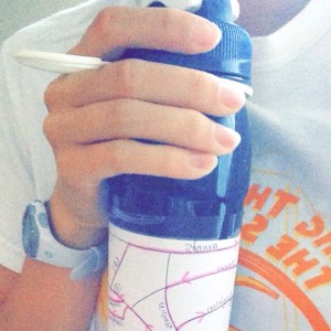 Note the old Timex watch & my ingenuity to tape my route to my water bottle