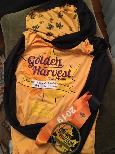 Once I realized my 5k goals for 2019 are shot, well, so went my half-marathon goals… (That’s not me being negative, but accepting and realistic.) Since I hadn’t been running much during the week, I could hardly go out for the weekend long runs after my vacays ended in the middle of August. I set off with a goal to get my weekend long runs back. Now I’ve been up to 6-7 miles, almost every weekend in the weeks prior to my favorite half-marathon, the Brooksie Way. Other runners at the park had passed me and courteously asked what I was training for. “Ummm nothing, I guess? Just running. No races on my horizon.” In a typical runner friendly way, one guy slowed his pace to briefly chat, me and my return to running after a busy summer, he and his return to running for his reasons. Sure enough, both of us had recognized each other a few weeks later and casually commended each other with a typical running nod and thumbs up for getting out and running. Because I wasn’t ready to run the Brooksie Way, though sure, I could have finished, but not without enduring those torturous hills first, and knowing I wouldn’t be running that race on the 3rd Sunday of September, instead I discovered the Golden Harvest 5k. This was at Plymouth Orchards and Cider Mill.