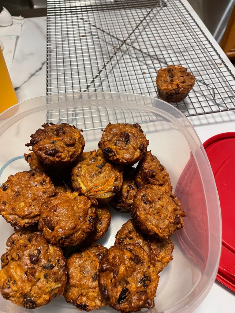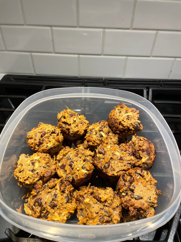 On Saturday morning I volunteered three hours at the charity garden. I chopped up green bean vines for nitrogen for the soil, moved wheelbarrowfuls of woodchips to close up some raised beds that have already been harvested, and then finished with some weeding. While its not running, the work is great cardio. I totally record the session as an activity on my Garmin watch. Usually its between 500-600 calories. (I give you permission to count your gardening and yard work as exercise; it definitely is!) After the garden I visited with family. Finally, I had to get home because I wanted to bake a dessert for Sunday. Since the kitchen was already a mess, and somehow not out of energy, I baked a version of Superhero Muffins from the Run Fast. Cook Fast. Eat Slow. book. If you’ve been around here on this blog, you know I frequently return to this cookbook. I added both chocolate chips and raisins, used store-bought shredded carrots, and added a shredded apple. Pretty much followed the recipe but tossing more stuff in. They turned out great, as usual, and honestly I’m telling myself (and my husband) that these are healthy for us.