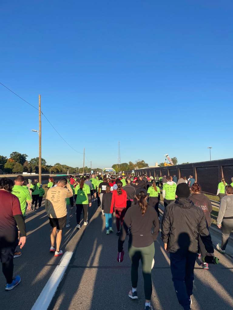 In the morning, it felt around low 50s, a little crisp that we weren’t quite ready for. Lots of people were walking around in their fleece jackets and long sleeve shirts. I kept my hoodie on while I went to get my race shirt and bib. They offer ‘packet pickup’ on Saturday – but I had a full Saturday as it was. It felt like a five-minute walk from the parking spot to the check-in. Everything was well-organized, a one-minute wait in line, and I was back to walking back to the car.