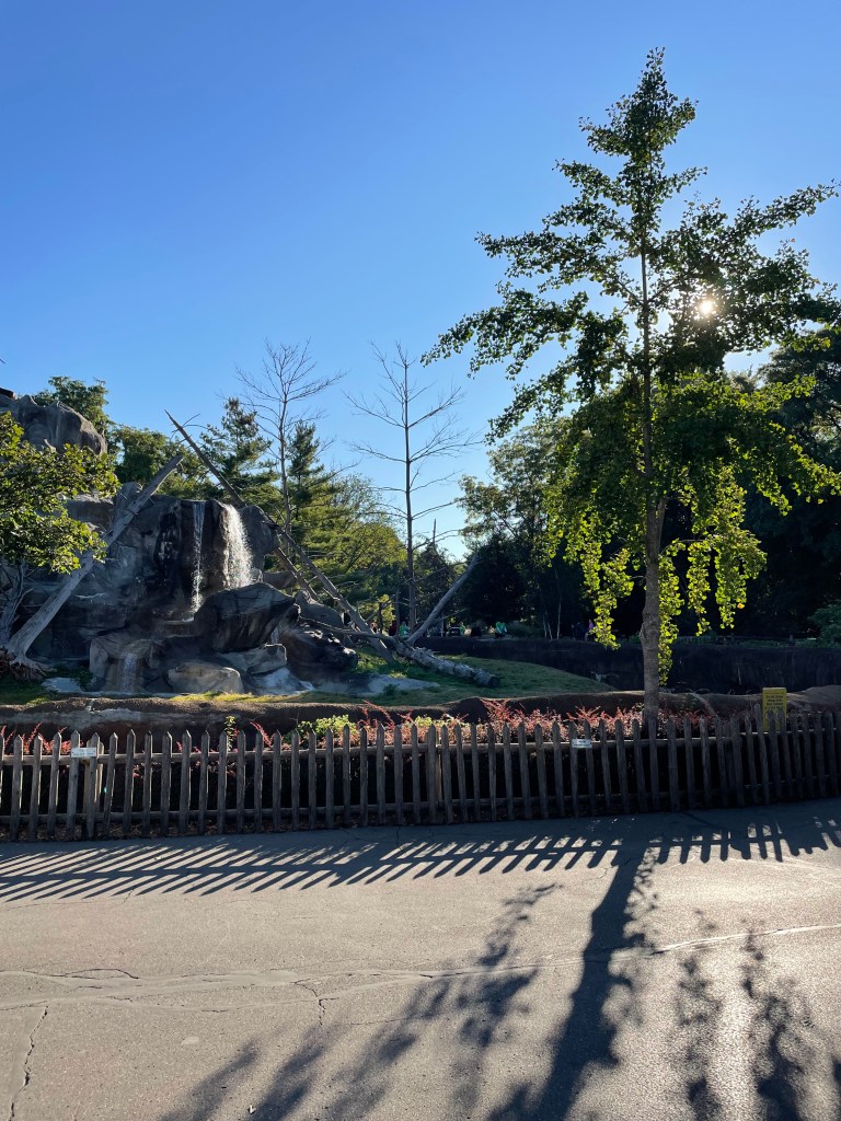 The running race started 12 minutes late. I can guess the entrances to get into the parking lots back up on the service drive and it moves slow. The delayed start didn’t bother me. My forward start was a good choice. The race begins on the service drive and goes past the golf course, turning into the neighborhood but still along the golf course, running by beautiful houses, with all the cars off the streets, then coming back up along the golf course. It is very pleasant, the streets do not have hazards like potholes or parked cars and it is fairly shady. Most people are surprised when I tell them the course isn’t actually inside the zoo. Duh! How can you have 1,000+ runners packed on the skinny pathways, not trip over benches, trample flowers, and not disturb the animals at the same time? I think it is perfectly fine for the run to be outside of the zoo.
