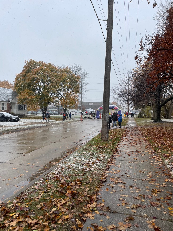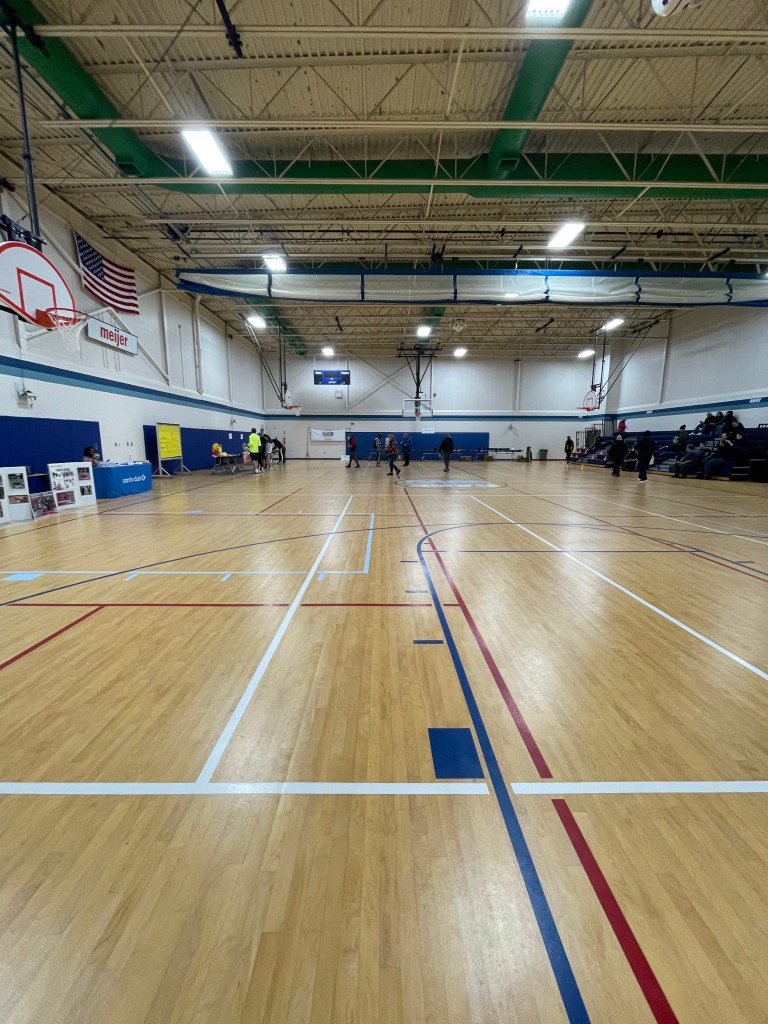 One of the nice things about this race is that it does not start early in the morning. The one mile, 10k, and 5k* races start 10 am -10:20 am. It’s easy to get parking. And there’s a nice, warm, spacious community center with indoor restrooms to utilize before and after. This was really appreciated as it was snowing that morning!