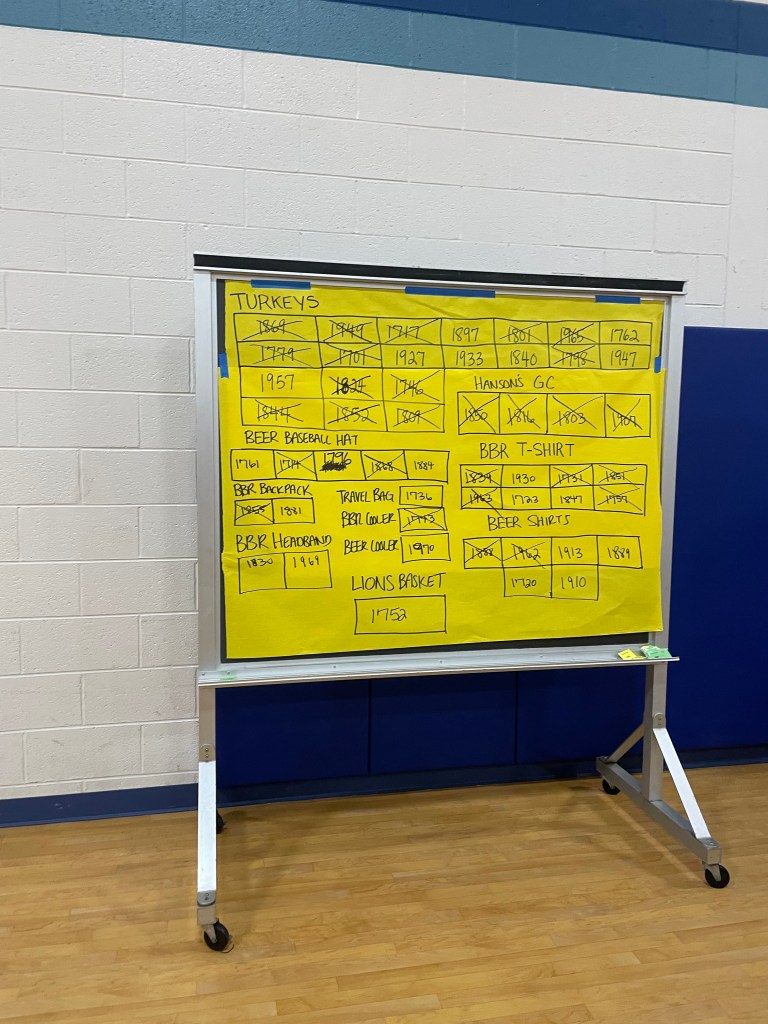 Onto more positive things, this is the race that raffles off frozen turkeys and other prizes! Key word: RAFFLE! Which means, you don’t have to be the fastest person to win a great prize. I love it! They draw bib entries while we’re out running so you come back into the warm gym and head to the board to see if your bib number is written!