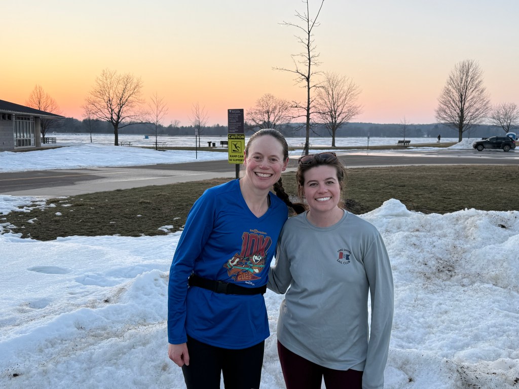 The Monday coming off the long run was back to a sunny warm day! We must’ve reached temps in the 50s. When I got to the park, it was 48F and gorgeously sunny, though still windy. I had no business running the 6-mile loop, especially so close to the previous long run, but we did. And I loved seeing how many people had the same idea to take advantage of this warmer day. Bonus – I saw Janet and she turned around to keep running back with us. It made for a great run, even though I reached the point of listening vs talking, it was tough running. This time my pace was 10:34/mile. I’d like to think the warmer weather helps and looking at the map of the run with the pace overlay – you sure can see where Janet was running with me! 😉 Great to see her!