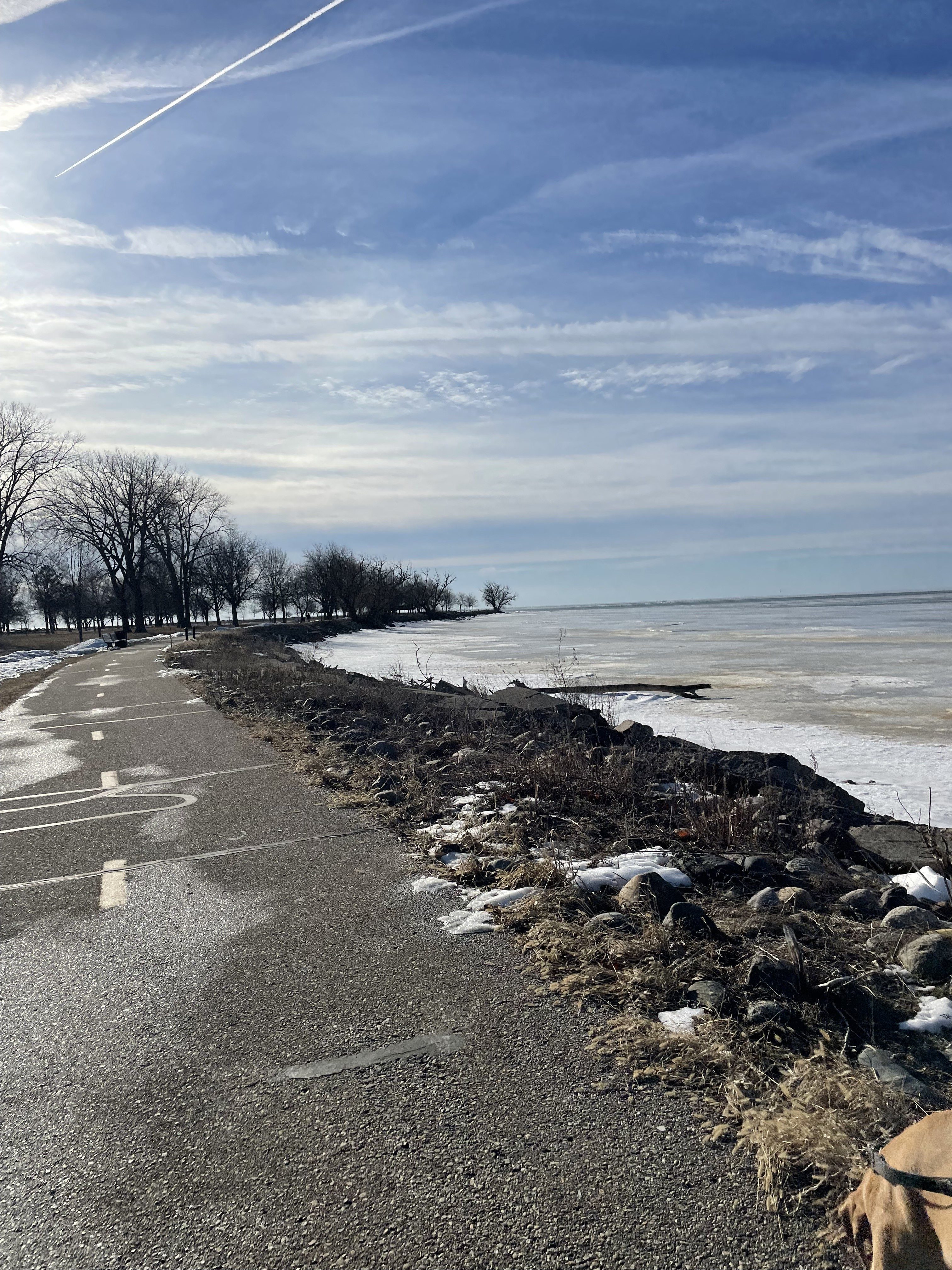 The next weekend, we met our friend for a run at a State Park. This was our long run of 5.5 miles. It was after several weekdays of warm sunshine and the melted snow made the path slick with ice in spots. We really had to watch our footing in places. I have only hiked the trails here and had not run the paved path before. It was hillier than I remembered. With the cold temps, I doubled my pants up. It felt tough though our average pace was 11:38/mile. I was still coming off the sickness. We picked up doughnuts on the way home.